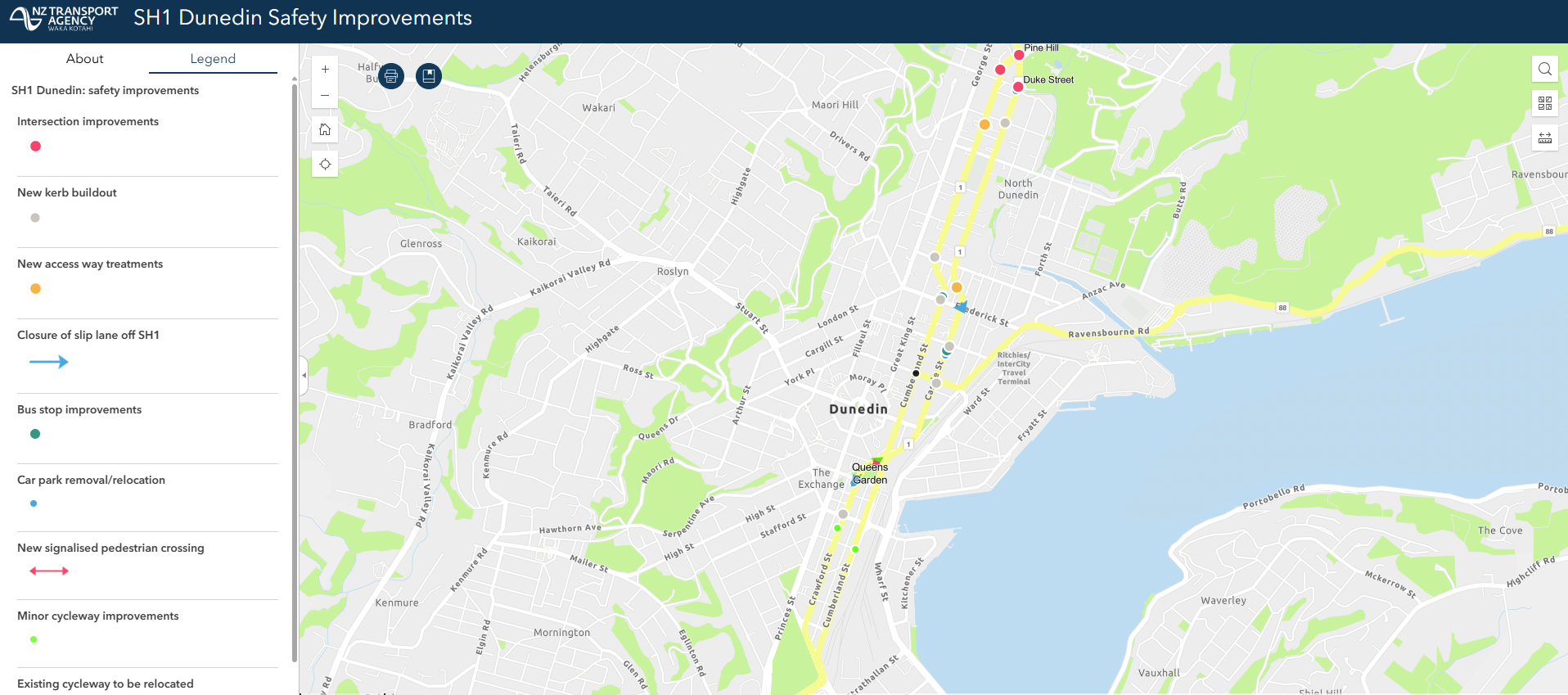 SH1 Dunedin safety improvement interactive map(external link)