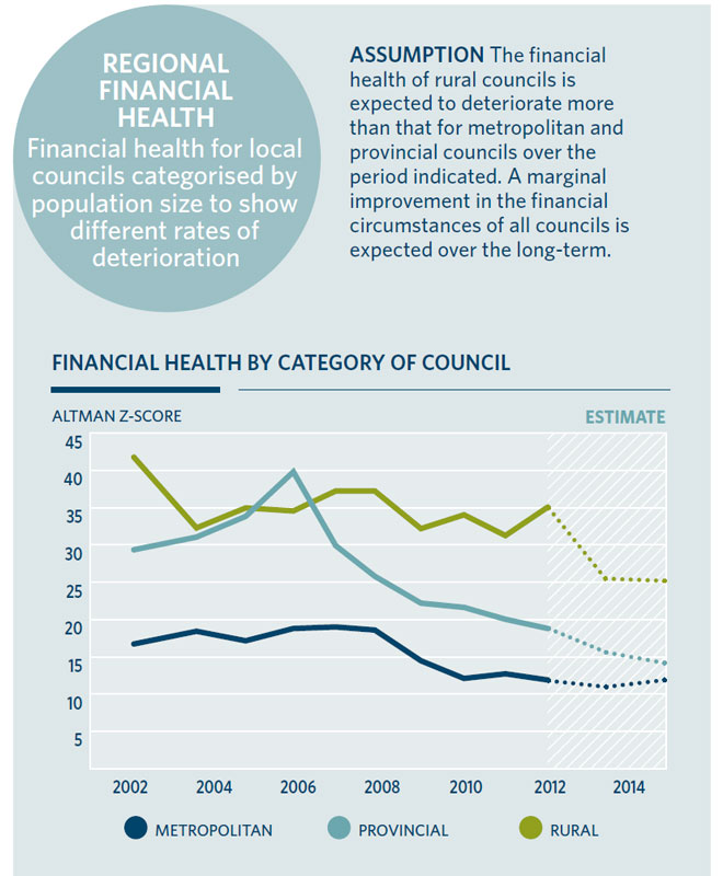 The Altman Z-score is a composite measure of financial health that incorporates a range of financial ratios using council income statement and balance sheet information.