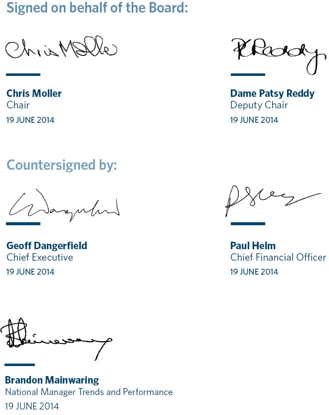 In signing this statement, we acknowledge our responsibility for the information contained in this Statement of performance expectations, and confirm the appropriateness of the assumptions underlying the prospective operations and financial statements of the NZ Transport Agency.