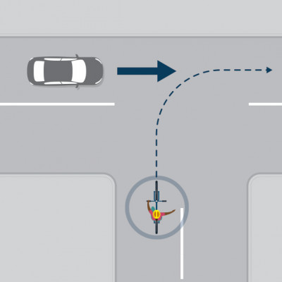 When turning, give way to vehicles that are going straight ahead