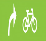 A sharrow marking is a bike symbol with a double chevron above it. Sharrow markings remind everyone that people riding bikes can take the lane.