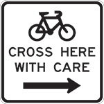 A hook turn is recommended for bikes turning right at the intersection ahead