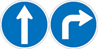 Compulsory signs are usually red or blue. They tell you what you must or must not do.