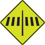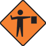Permanent warning signs are yellow or fluorescent yellow/green. Temporary signs are orange.