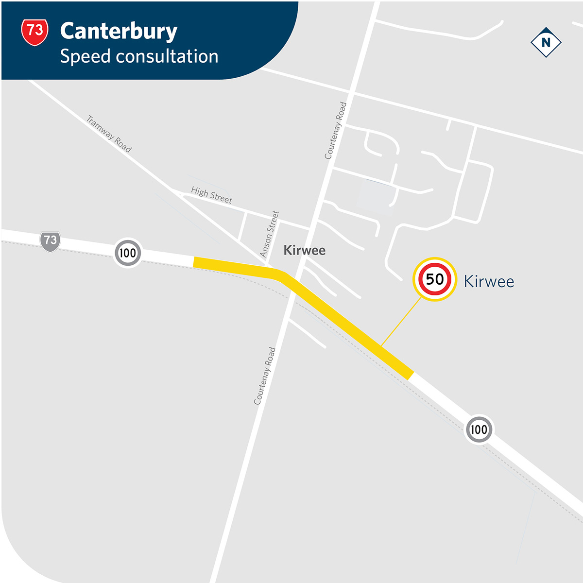 SH73 is a key route connecting Christchurch and the West Coast and plays an important role in freight and resilience across the region. In Kirwee, the road is mainly used by vehicles, with a small number of people cycling. The environment is peri-urban, with footpaths on one side of the road, several intersections, and ongoing subdivision of larger properties into multiple lots. Kirwee is a growing community spread across both sides of the highway and the railway line, with residential development continuing. Reducing the speed limit will reduce the severity of any crashes, particularly when turning at intersections. While other safety improvements may be considered in future, lowering the speed limit is a practical first step to improve safety now.