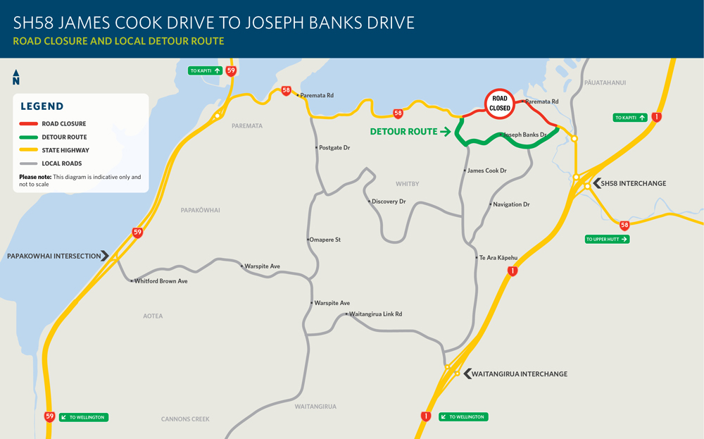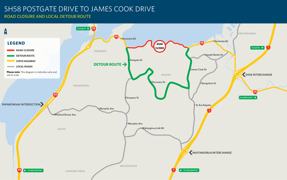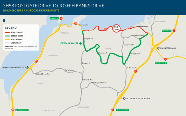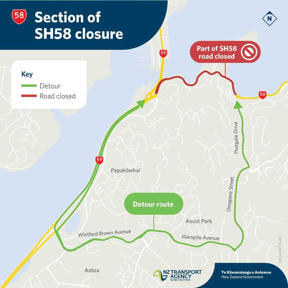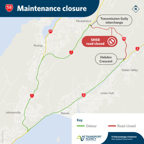 WTA regularly closes State Highway 58 between State Highway 59/Paremata and State Highway 1 Transmission Gully/ Pāuatahanui to complete sign replacements, vegetation maintenance, edge-marker post replacements, and other maintenance activities.