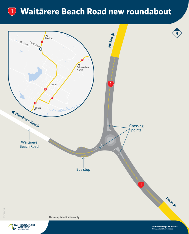 The new roundabout is necessary to provide a safe connection to Waitārere Beach as the population of the region grows and traffic increases on SH1 and Waitārere Beach Road. The roundabout will also help create a smooth transition between the new Ōtaki to north of Levin expressway (once complete) and the existing highway.