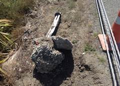 The Transport Agency has been made aware of a number of issues associated with the failure under impact of wire rope safety barrier (WRSB) post footings (see photos below). The issues are generic in nature and not specific to any particular system.
