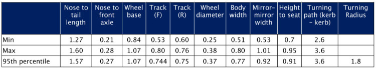 Table 1: Typical mobility scooter dimensions (in metres)