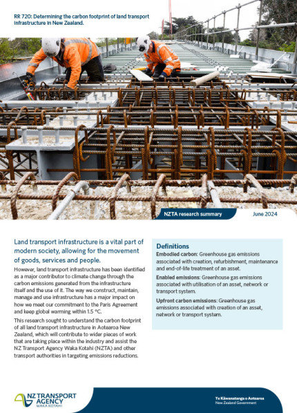 This research sought to understand the carbon footprint of all land transport infrastructure (road and rail) in Aotearoa New Zealand to assist Waka Kotahi and other transport authorities in targeting emissions reductions.